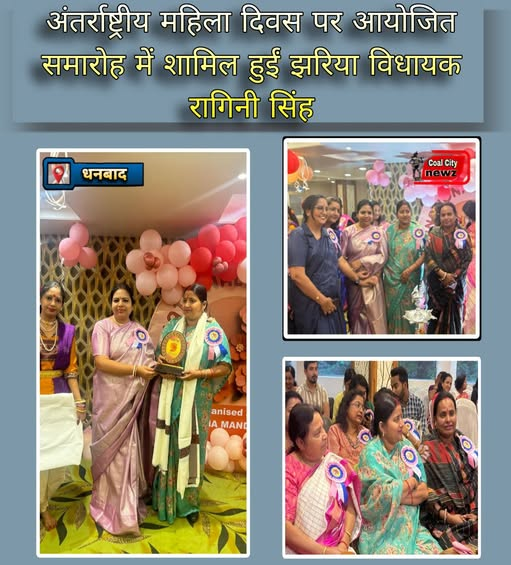 #कोल_सिटी_न्यूज़#धनबाद:- बलियापुर–सिंदरी रोड स्थित होटल हिल व्यू में शनिवार को अंतर्राष्ट्रीय महिला दिवस के अवसर पर एक भव्य समारोह का आयोजन किया गया। इस कार्यक्रम का आयोजन समाजसेवी शिल्पी घोष द्वारा किया गया। समारोह में झरिया की विधायक रागिनी सिंह मुख्य अतिथि के रूप में शामिल हुईं, जहां उन्होंने दीप प्रज्वलित कर कार्यक्रम का शुभारंभ किया।