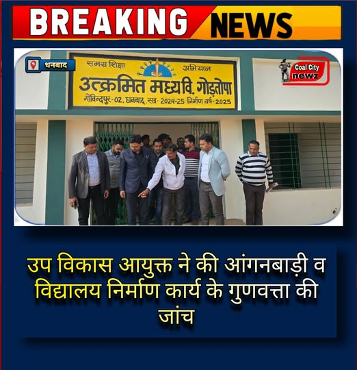 #कोल_सिटी_न्यूज़#धनबाद:- उप विकास आयुक्त श्री सन्नी राज ने आज अनुमंडल पदाधिकारी श्री लोकेश बारंगे के साथ गोविंदपुर प्रखंड के विभिन्न पंचायतों का दौरा कर आंगनबाड़ी केंद्र तथा विद्यालय के निर्माण कार्य की प्रगति व गुणवत्ता की जांच की।