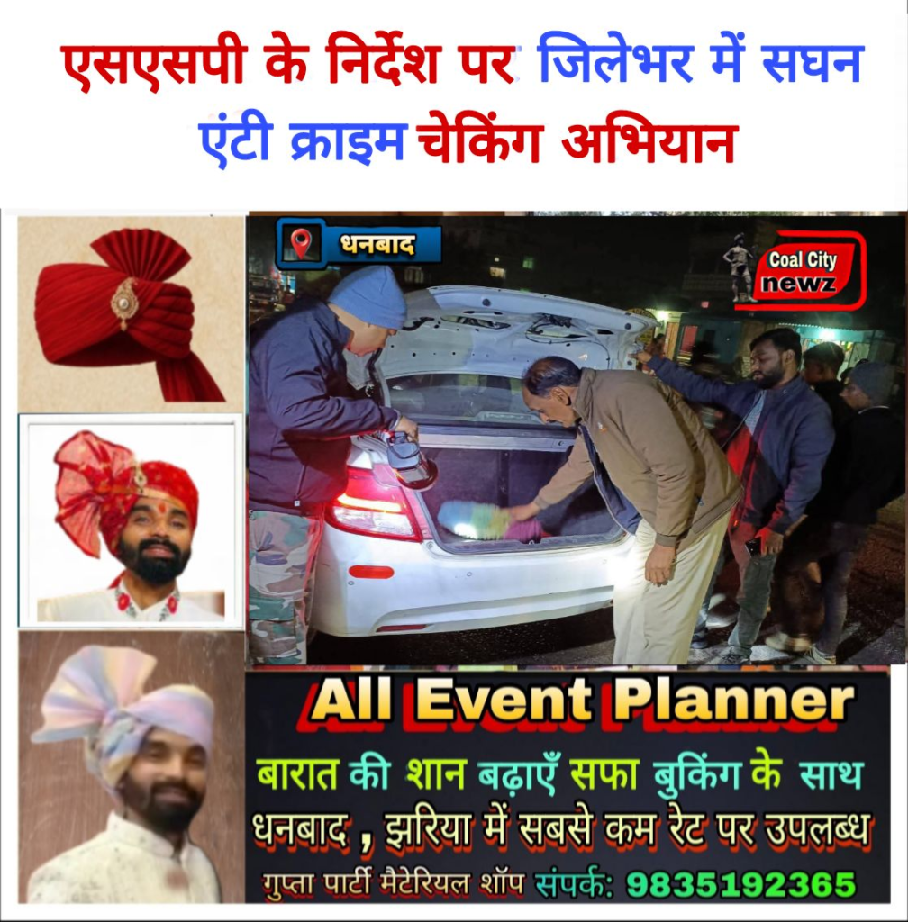 #कोल_सिटी_न्यूज़#धनबाद:- एसएसपी श्री प्रभात कुमार के निर्देश पर जिलेभर में सघन एंटी क्राइम चेकिंग अभियान चलाया गया। अभियान के दौरान शहरी एवं ग्रामीण क्षेत्रों में कुल 1515 वाहनों की जांच की गई।