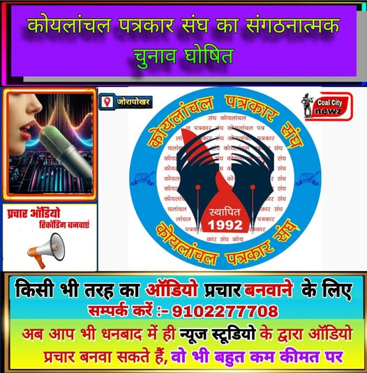 #कोल_सिटी_न्यूज़#जोरापोखर (#काजल_राय):- कोयलांचल पत्रकार संघ ने अपने संगठनात्मक चुनाव की औपचारिक अधिसूचना जारी कर दी है। संघ के केंद्रीय कार्यालय शालीमार में रविवार को आयोजित एक बैठक में यह फैसला सर्वसम्मति से लिया गया कि आगामी 29 मार्च 2026 को संघ का चुनाव संपन्न होगा। पूरी चुनावी प्रक्रिया की निगरानी कोयलांचल पत्रकार कल्याण समिति ट्रस्ट द्वारा की जाएगी, ताकि यह पूरी तरह पारदर्शी, निष्पक्ष और विश्वसनीय हो। बैठक की अध्यक्षता संघ के अध्यक्ष सुनील सिंह ने की।