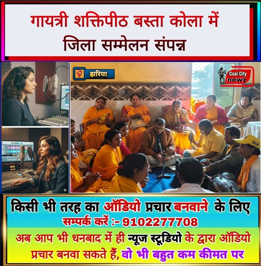 #कोल_सिटी_न्यूज़#झरिया/#धनबाद:- अखिल विश्व गायत्री परिवार के तत्वावधान में गायत्री शक्तिपीठ बस्ता कोला में जिला सम्मेलन का आयोजन किया गया। सम्मेलन का उद्देश्य जिलेभर में जनजागरण अभियान, गांव-गांव बाल संस्कार केंद्र खोलना, नशा उन्मूलन, युवाओं को गायत्री परिवार से जोड़ना तथा विराट पुस्तकमेला आयोजित करने का सामूहिक संकल्प लेना रहा।