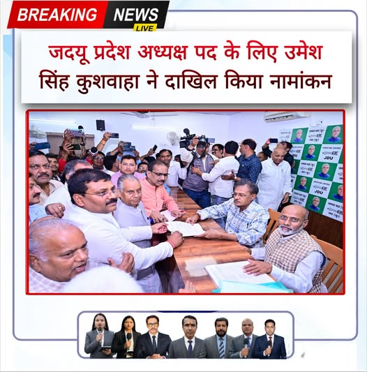 #कोल_सिटी_न्यूज़#बिहार/#पटना: आज श्री उमेश सिंह कुशवाहा ने प्रदेश निर्वाचन पदाधिकारी श्री अशोक कुमार ‘मुन्ना’ एवं श्री परमहंस कुमार के समक्ष जदयू प्रदेश अध्यक्ष पद के लिए अपना नामांकन पत्र दाखिल किया।