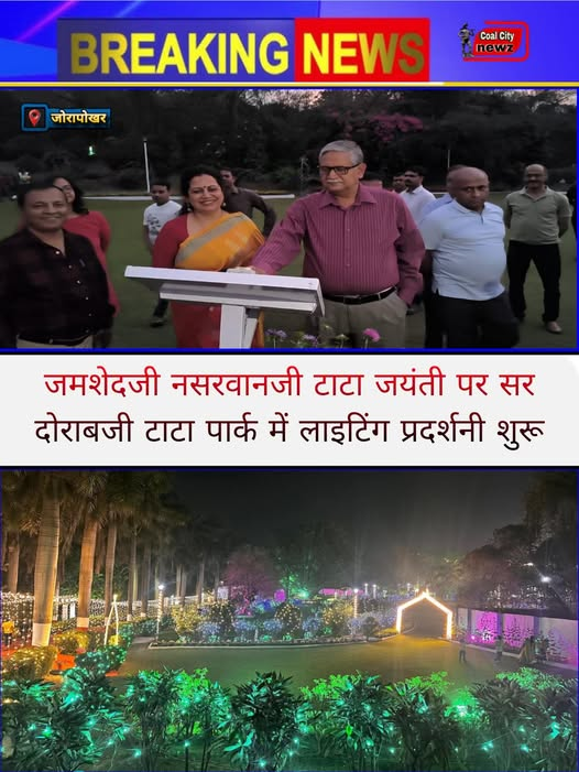 #कोल_सिटी_न्यूज़#जोड़ापोखर(काजलराय):- संस्थापक जमशेदजी नसरवानजी टाटा की 187वीं जयंती के अवसर पर रविवार को संस्थापक दिवस लाइटिंग प्रदर्शनी का उद्घाटन संजय रजोरिया, जनरल मैनेजर (कोल), एवं सुनीता रजोरिया द्वारा सर दोराबजी टाटा पार्क में किया गया।