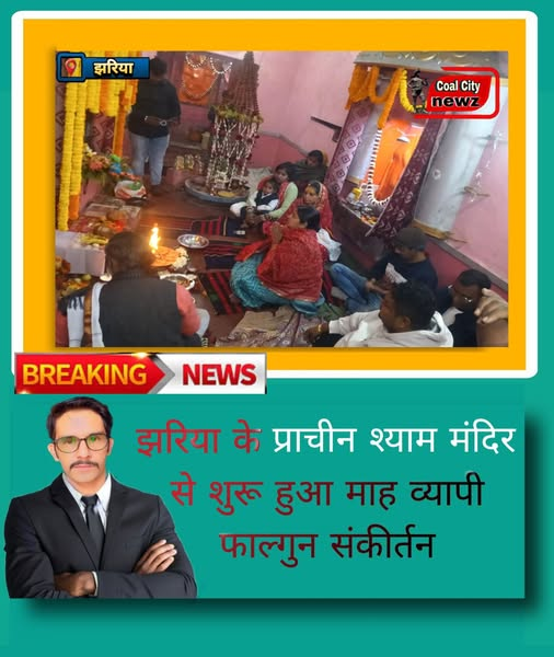 #कोल_सिटी_न्यूज़#झरिया/#धनबाद:- झरिया अकैडमी अमलापाड़ा झरिया स्थित प्राचीन प्रभु श्याम मंदिर में रविवार की शाम से माह व्यापी फाल्गुन संकीर्तन की शुरुआत हुई। जिसमें झरिया विधायक रागिनी सिंह भी शामिल हुई। उन्होंने प्रभु श्याम की पूजन अर्चना कर कोईलांचल वासियों के सुख समृद्धि की कामना की।