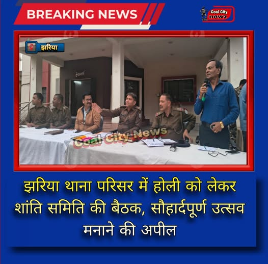 #कोल_सिटी_न्यूज़#झरिया:- झरिया थाना परिसर में होली पर्व को लेकर शांति समिति की एक महत्वपूर्ण बैठक आयोजित की गई। बैठक की अध्यक्षता झरिया सीओ मनोज कुमार ने की। इस दौरान उन्होंने उपस्थित सभी गणमान्य लोगों एवं समिति सदस्यों से अपील करते हुए कहा कि होली रंगों का त्यौहार है, जिसे भाईचारा, प्रेम और आपसी सौहार्द के साथ मनाया जाना चाहिए।