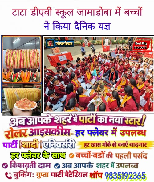 #कोल_सिटी_न्यूज़#जोरापोखर (#काजल_राय):- टाटा डीएवी स्कूल जामाडोबा में सभी विद्यार्थियों ने दैनिक यज्ञ (हवन) किया। कार्यक्रम का शुभारंभ मुख्य अतिथि संतोष कुमार महतो, सचिव राष्ट्रीय कोयलरी मजदूर संघ ने किया।