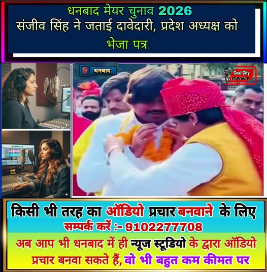 संजीव सिंह ने यह भी बताया कि वे वर्तमान में बीसीसीएल से जुड़े श्रमिक संगठनों के माध्यम से मजदूरों के हित, अधिकार और सामाजिक-आर्थिक कल्याण के लिए लगातार कार्य कर रहे हैं, जिससे उन्हें जमीनी स्तर की समस्याओं की गहरी समझ है।पत्र के माध्यम से उन्होंने पार्टी नेतृत्व से मार्गदर्शन और समर्थन की अपील करते हुए कहा कि वे संगठन के हर निर्णय और निर्देश का पालन करने के लिए सदैव तैयार रहेंगे।संजीव सिंह की दावेदारी सामने आने के बाद धनबाद नगर निगम चुनाव को लेकर राजनीतिक चर्चाएं तेज हो गई हैं।