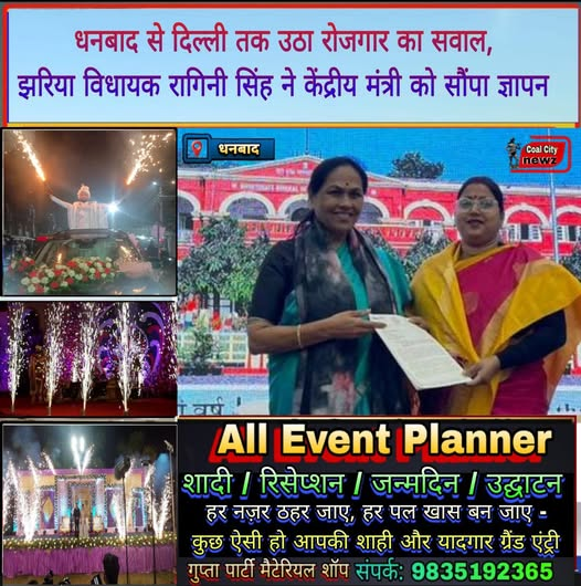 #कोल_सिटी_न्यूज़#धनबाद:- धनबाद: कोल इंडिया लिमिटेड में लंबे समय से भर्ती प्रक्रिया नहीं होने, आयु-छूट, विस्थापितों के रोजगार, श्रमिकों के शोषण तथा एमएसएमई प्रक्रियाओं को सरल बनाने जैसे गंभीर विषयों को लेकर झरिया विधायक रागिनी सिंह ने केंद्रीय राज्य मंत्री (श्रम एवं रोजगार मंत्रालय तथा सूक्ष्म, लघु एवं मध्यम उद्यम मंत्रालय) माननीय शोभा करंदलाजे जी को पत्र सौंपा। उन्होंने इन मुद्दों पर ध्यानाकर्षण कर त्वरित संज्ञान लेने का आग्रह किया।
