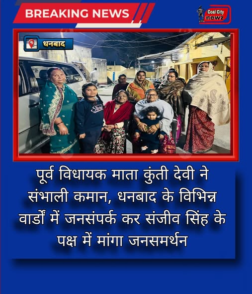माता कुंती देवी ने कहा कि संजीव सिंह ने हमेशा क्षेत्र की जनता की सेवा और विकास को प्राथमिकता दी है। उन्होंने विश्वास जताया कि धनबाद की जागरूक जनता विकास, पारदर्शिता और जनहित की सोच को आगे बढ़ाने के लिए संजीव सिंह को भारी मतों से विजयी बनाएगी।