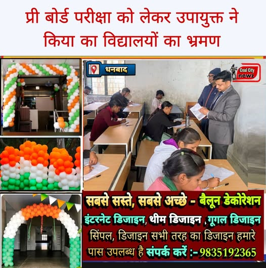 #कोल_सिटी_न्यूज़#धनबाद:- उपायुक्त सह जिला दंडाधिकारी श्री आदित्य रंजन ने मैट्रिक एवं इंटरमीडिएट की बोर्ड परीक्षा से पहले चल रही प्री बोर्ड परीक्षा को लेकर आज गोविंदपुर के गोसाईंडीह स्थित उत्क्रमित +2 उच्च विद्यालय सहित अन्य विद्यालयों का भ्रमण किया।
