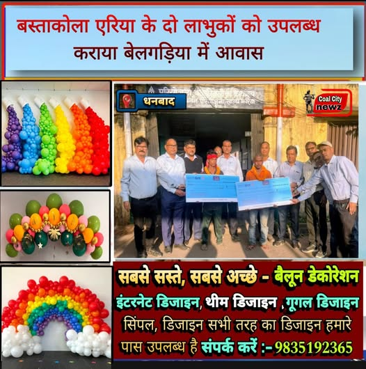 #कोल_सिटी_न्यूज़#धनबाद :- उपायुक्त सह जिला दंडाधिकारी श्री आदित्य रंजन के निर्देशानुसार झरिया मास्टर प्लान 2.0 के तहत भारत कोकिंग कोल लिमिटेड (बीसीसीएल) के बस्ताकोला एरिया के राजापुर क्षेत्र निवासी श्री भोला भुइयां तथा श्री मुकेश कुमार को झरिया पुनर्वास एवं विकास प्राधिकार (जेआरडीए) ने बेलगड़िया टाउनशिप में आवास उपलब्ध कराया।