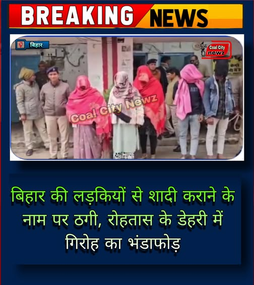 #कोल_सिटी_न्यूज़#बिहार/#सासाराम:- रोहतास जिले के डेहरी में बिहार की लड़कियों से शादी कराने के नाम पर ठगी करने वाले एक संगठित गिरोह का पुलिस ने पर्दाफाश किया है। इस मामले में पुलिस ने त्वरित कार्रवाई करते हुए तीन महिलाओं समेत कुल पांच आरोपियों को गिरफ्तार किया है।