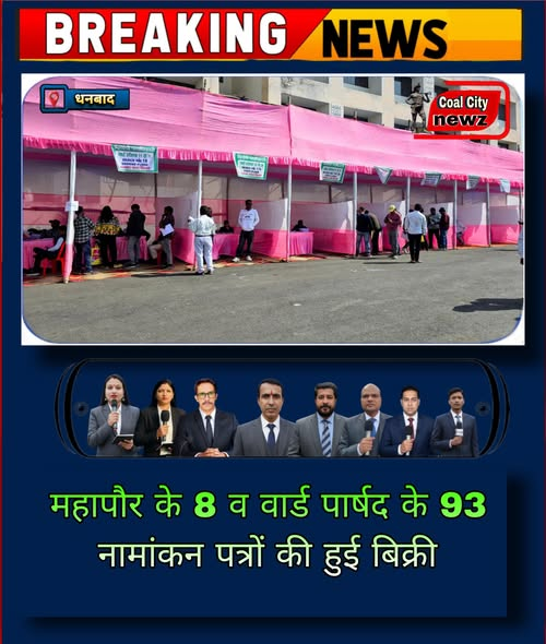 #कोल_सिटी_न्यूज़#धनबाद:- नगर निकाय चुनाव को लेकर सोमवार को महापौर पद के लिए 8 नामांकन पत्रों की बिक्री हुई। वहीं वार्ड 1 से वार्ड 55 तक के लिए 93 नामांकन पत्रों की बिक्री हुई।