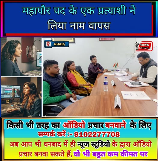 #कोल_सिटी_न्यूज़#धनबाद:- नगर निकाय चुनाव में शुक्रवार को धनबाद नगर निगम के महापौर के एक प्रत्याशी श्रीमती नीलम मिश्रा ने निर्वाची पदाधिकारी सह अपर समाहर्ता श्री विनोद कुमार, सहायक निर्वाची पदाधिकारी श्री बाल किशोर महतो तथा सहायक निर्वाची पदाधिकारी श्री विशाल कुमार पांडेय के समक्ष नामांकन वापस ले लिया।