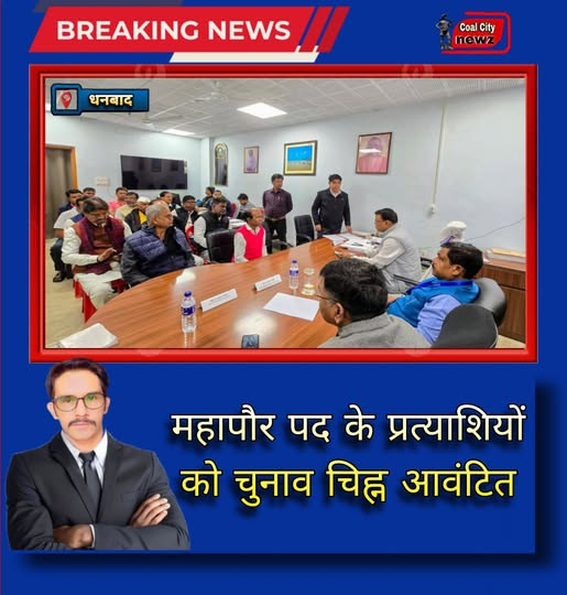 #कोल_सिटी_न्यूज़#धनबाद:- नगर निकाय चुनाव को लेकर शनिवार को धनबाद नगर निगम के सामान्य प्रेक्षक श्री रोबिन टोप्पो की उपस्थिति में निर्वाची पदाधिकारी (महापौर) सह अपर समाहर्ता श्री विनोद कुमार तथा सहायक निर्वाची पदाधिकारी श्री बाल किशोर महतो ने महापौर पद के 29 प्रत्याशियों को चुनाव चिह्न आवंटित किया।