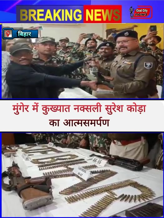 बिहार के मुंगेर में कुख्यात नक्सली सुरेश कोड़ा ने पुलिस उप महानिरीक्षक राकेश कुमार के समक्ष आत्मसमर्पण कर दिया। सुरेश कोड़ा स्पेशल एरिया कमिटी का कमांडर और सशस्त्र नक्सली दस्ते का सक्रिय सदस्य था।