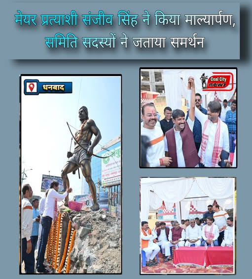 #कोल_सिटी_न्यूज़#धनबाद:- धनबाद सरायढेला गोल बिल्डिंग स्थित बाबा तिलका माँझी चौक पर मेयर प्रत्याशी एवं झरिया के पूर्व विधायक माननीय संजीव सिंह ने महान आदिवासी स्वतंत्रता सेनानी बाबा तिलका माँझी जी की आदमकद प्रतिमा पर माल्यार्पण कर उन्हें श्रद्धासुमन अर्पित किए।