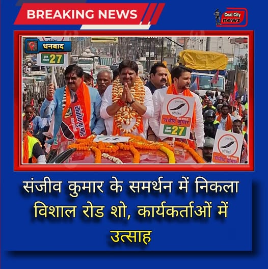 #कोल_सिटी_न्यूज़#धनबाद:- संजीव कुमार के विशाल रोड शो कार्यक्रम में भारी संख्या में समर्थकों और आमजन की सहभागिता देखने को मिली। पूरे मार्ग में उत्साह का माहौल रहा और समर्थकों ने जोरदार स्वागत किया।