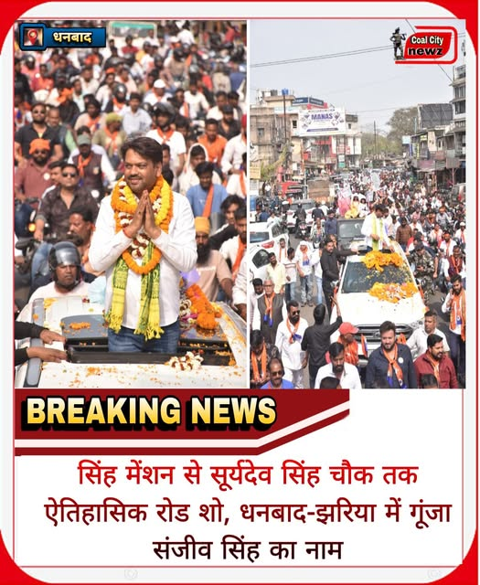 सिंह मेंशन से सूर्यदेव सिंह चौक तक ऐतिहासिक रोड शो, धनबाद-झरिया में गूंजा संजीव सिंह का नाम