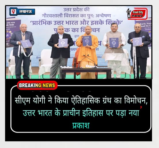 #कोल_सिटी_न्यूज़#लखनऊ:- मुख्यमंत्री योगी आदित्यनाथ ने आज राजधानी लखनऊ में ‘प्रारंभिक उत्तर भारत और इसके सिक्के’ पुस्तक का विमोचन किया। यह केवल एक सामान्य पुस्तक का लोकार्पण नहीं, बल्कि उत्तर भारत के प्राचीन इतिहास को प्रमाणों के साथ दुनिया के सामने रखने वाला एक महत्वपूर्ण दस्तावेज है, जो ऐतिहासिक तथ्यों पर नई दृष्टि प्रदान करता है।